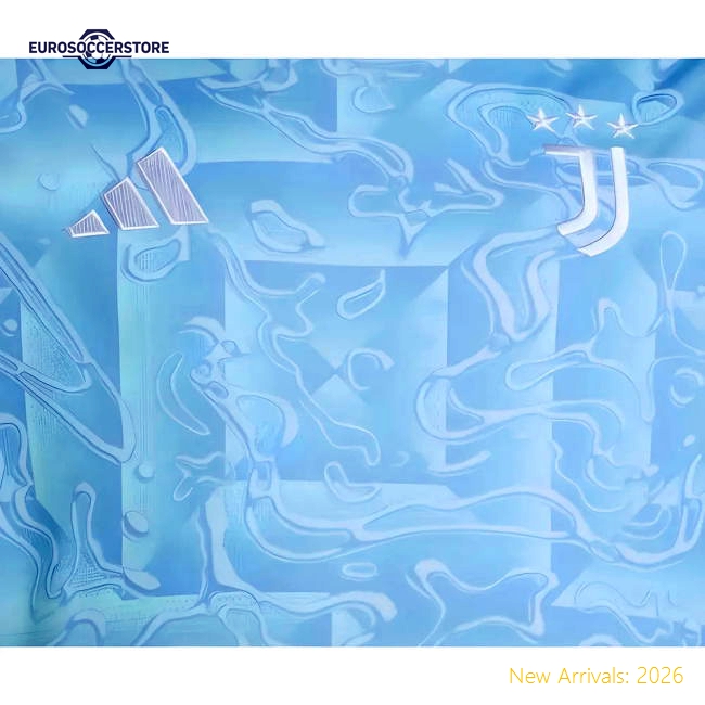 Italian summers land on this juniors' Juventus 2025/26 Away Shirt from adidas. Drawn from the Turin flag, this stadium shirt lands in an Ash Blue colourway with Pearl Citrine 3-Stripes, while the water-like print delivers vibrant play. It's made from lightweight recycled polyester, with a back panel mesh insert and sweat-wicking AEROREADY tech keeping you cool. Finished off with thick trims, the adidas Performance logo and the Juventus crest.